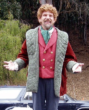 Here he is at the party. "My dear Bagginses and Boffins...."