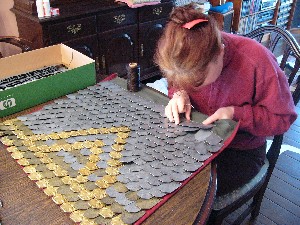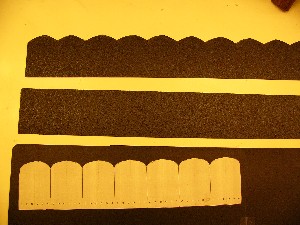 The scales are then painted on the SHINY side with Krylon hammered metal paint. We used silver.