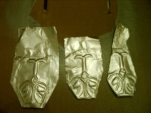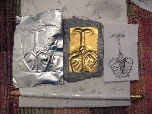 The pattern of the scales was worked out on the paper mock-up from photos of the original. For
