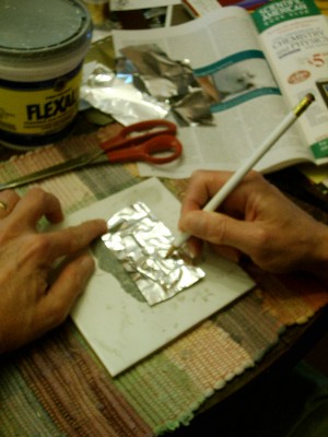 silver), the embossed scales, and a few unembossed scales which are painted hammered gold.