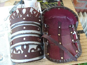 The last step is to attach the embossed straps that hold the pauldron together, closed under the arm, and