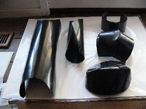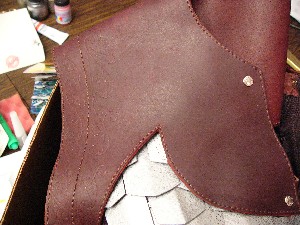 to the garment. It is attached with 8 rivets. There are grommets in the base garment where the rivets pass