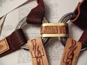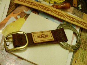 leftover silk from the shirt) and the latigo parts of the belt were dyed on the edges. The
