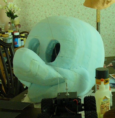 Mickey was covered with flesh colored felt attached with 3M 77 spray adhesive. His nose and inner mouth