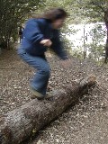 Next we walk over to the other part of the lake for Nen Hitheol. Some wade out on Sam's Beach, being careful to look out for glass and other sharp objects! The water is cold! Up the hill we all take turns being hobbits as Frodo, Merry and Pippin hide from the Orcs in the tree roots and hollow logs.