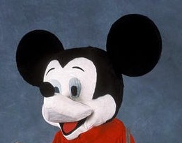 Mickey was covered with flesh colored felt attached with 3M 77 spray adhesive. His nose and inner mouth